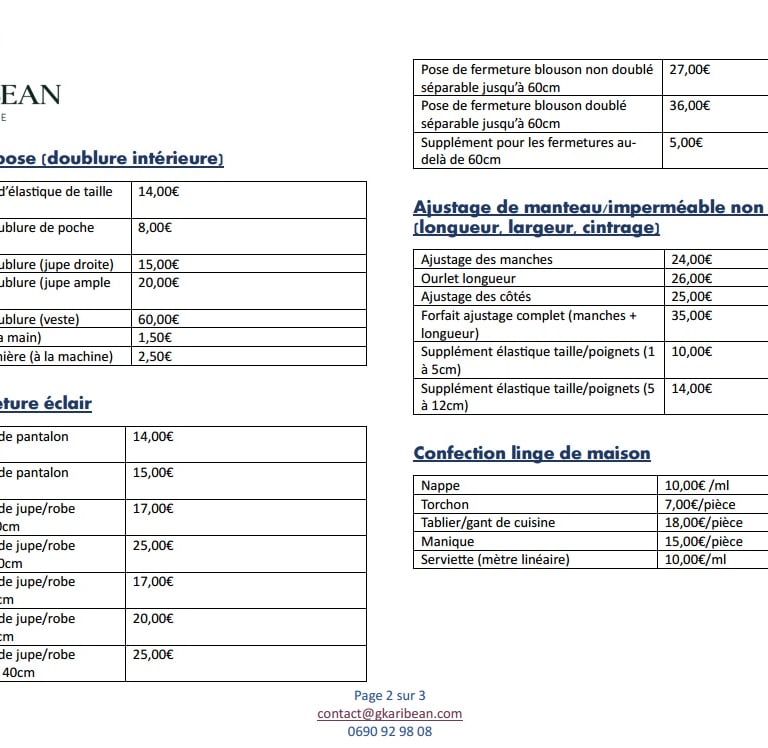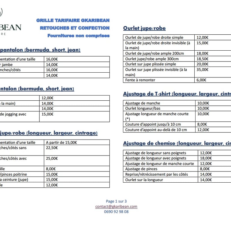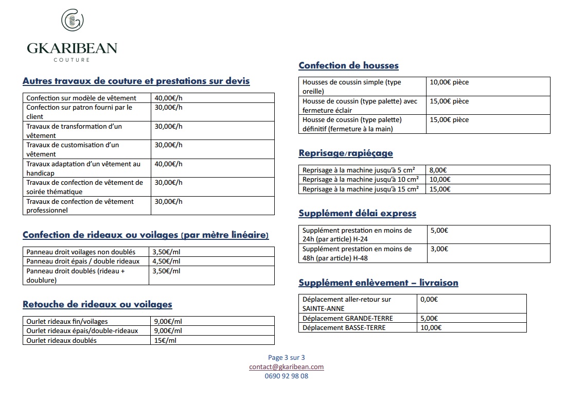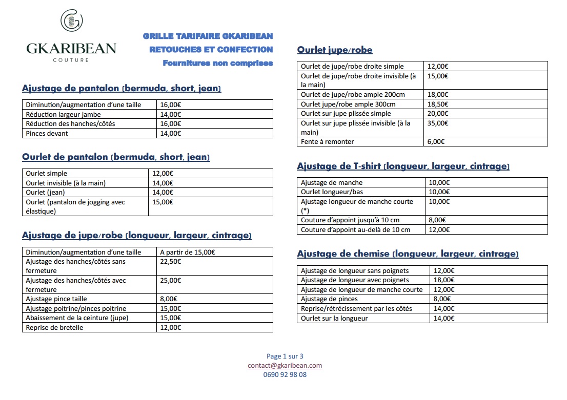 Tarif Main d'œuvre Confection jupe Gwo ka,